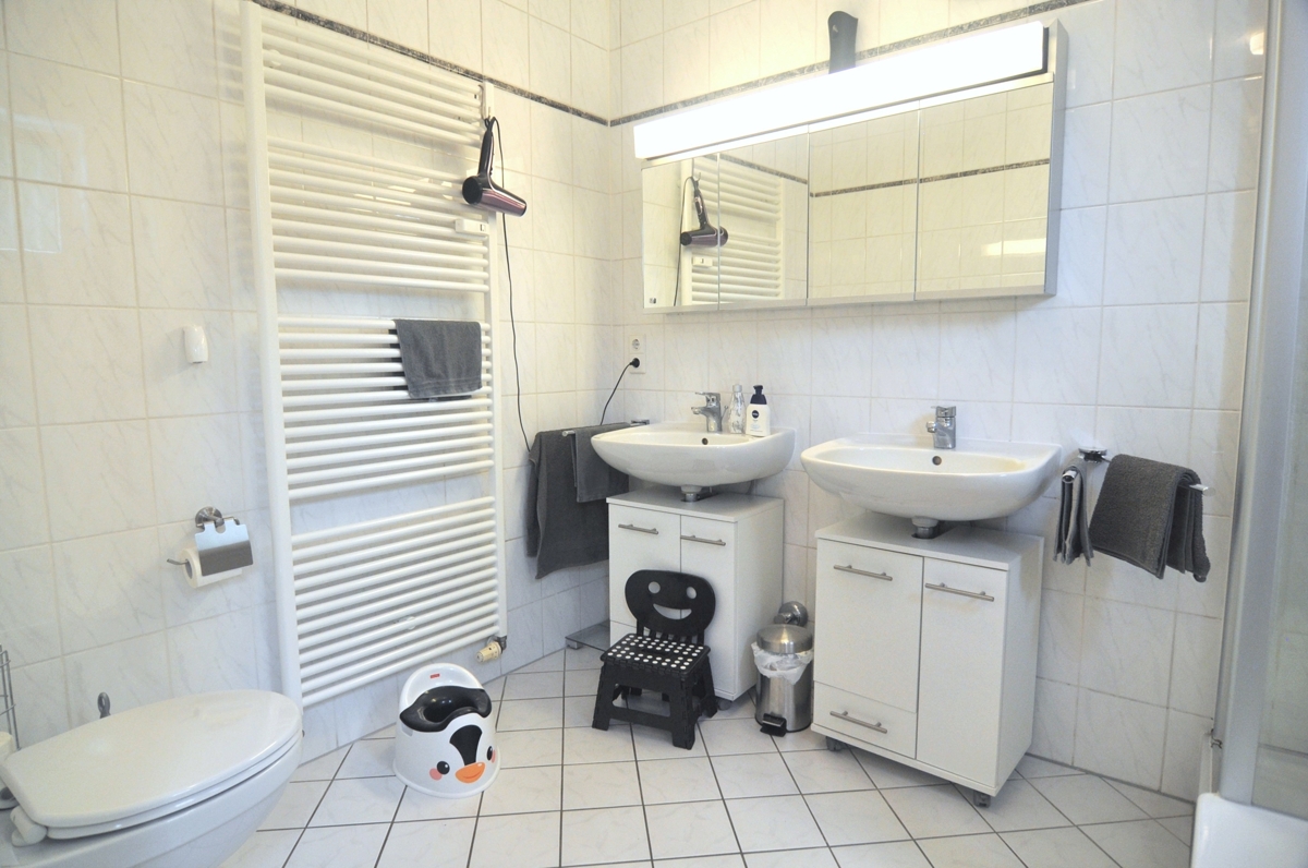 - Im Bad ist auch Raum für Waschmaschine und Trockner