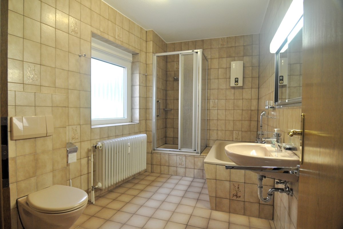 - Gäste WC und Tageslicht-Bad mit Wanne, Dusche, Spiegelschrank
