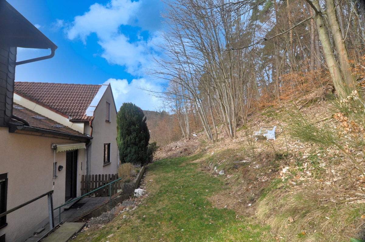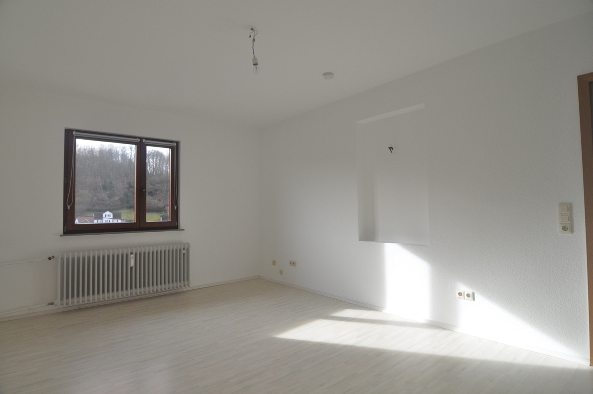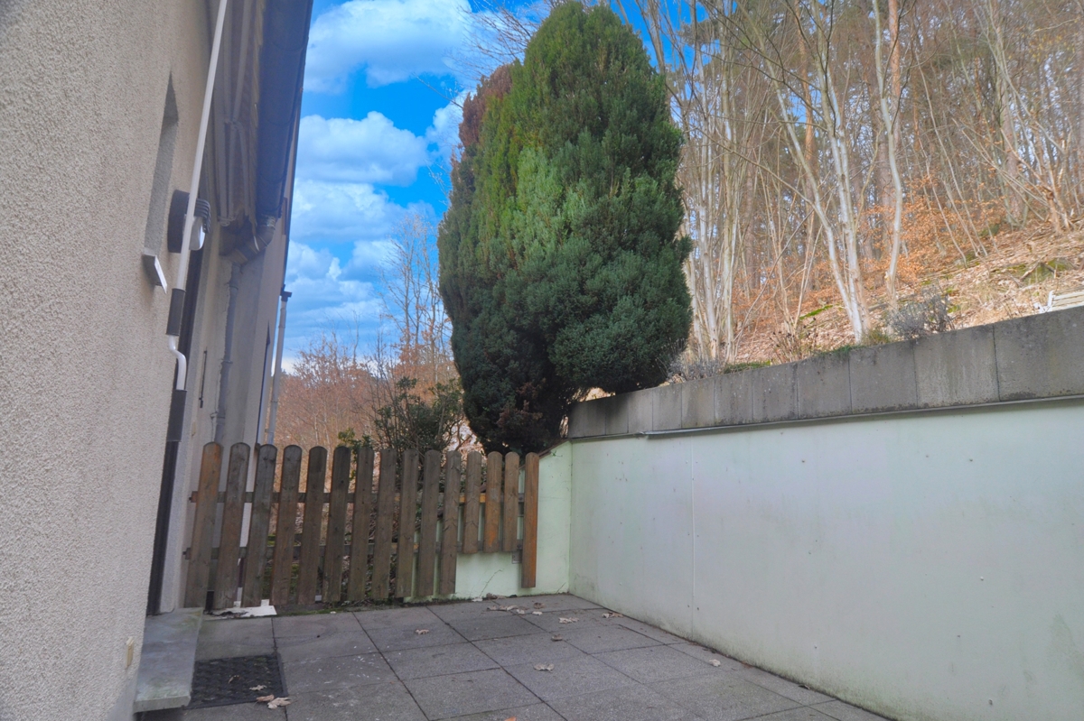 Diese Wohnung wird Ihnen gefallen... großzügig geschnitten, im 1. OG gelegen bietet sie wegen der Hanglage einen Terrassenbereich mit kleinem Gärtchen an der Rückseite des Hauses. Ein Gartenhäuschen bietet Platz für Ihre Utensilien und die kleine Veranda davor lädt zum Sitzen, mit Blick über das Tal hinweg, geradezu ein. Eine Einbauküche ist bereits vorhanden. Die Wohnung wird vor dem Einzug noch weiß gestrichen.