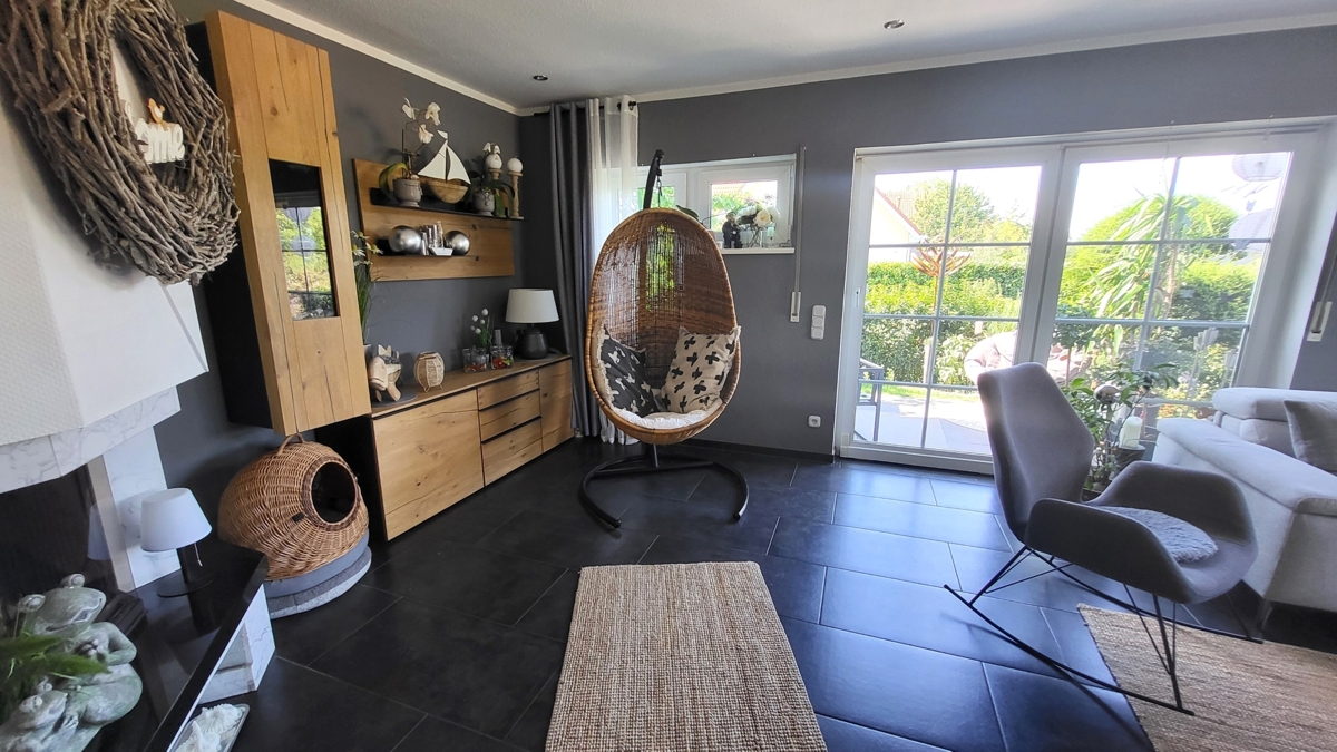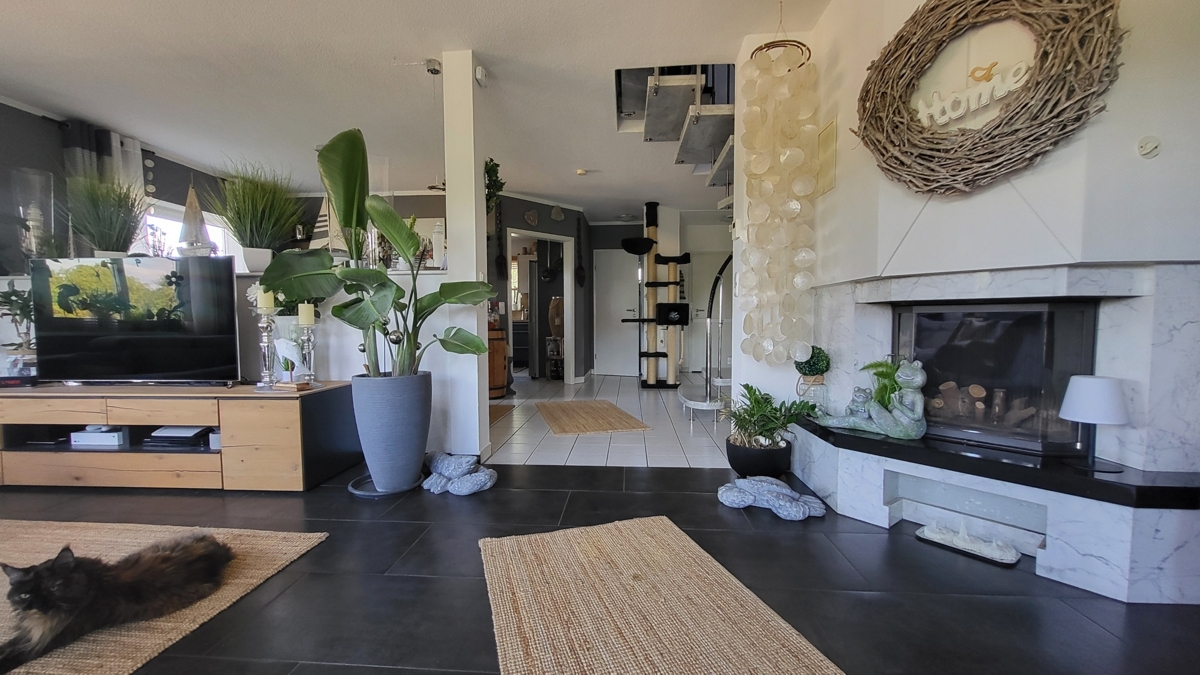Vom großzügigen Eingangsbereich geht es in das lichtdurchflutete riesige Wohn/Esszimmer mit knapp 50 m². Von hier aus haben Sie direkten Zugang in die hochwertige, 2020 erneuerte Küche mit reichlich Stellfläche und modernen Küchengeräten inkl. Bora Abzug, sowie zu der großen nach Süd-Westen ausgerichteten Terrasse mit angrenzendem Gartenbereich mit weiterer Sitzecke am „Wasserfall“. Weiterhin steht im Garten noch eine kleine Gartenhütte zur Verfügung.
